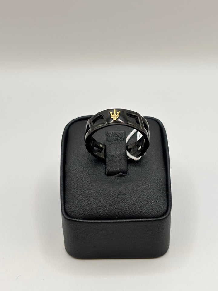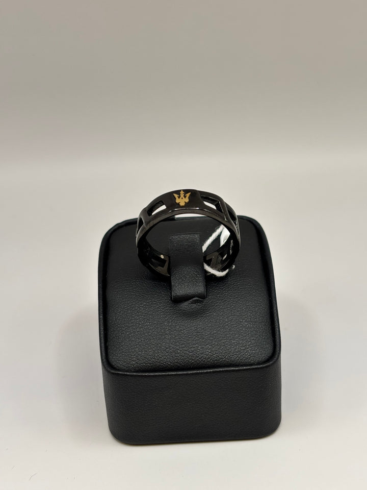 טבעת ייחודית בהשראת מותג Maserati, עשויה מתכת שחורה עם סמל מוזהב במרכז. שילוב מושלם של עוצמה, סטייל ויוקרה – לגבר שאוהב בולטות ונוכחות.