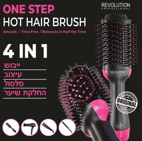 מברשת שיער חשמלית מקצועית 4 ב-1 Revolution Professional דגם One-Step Hair Dryer