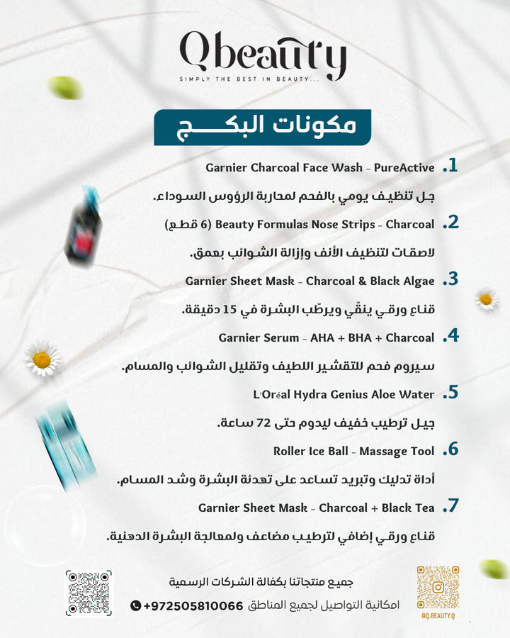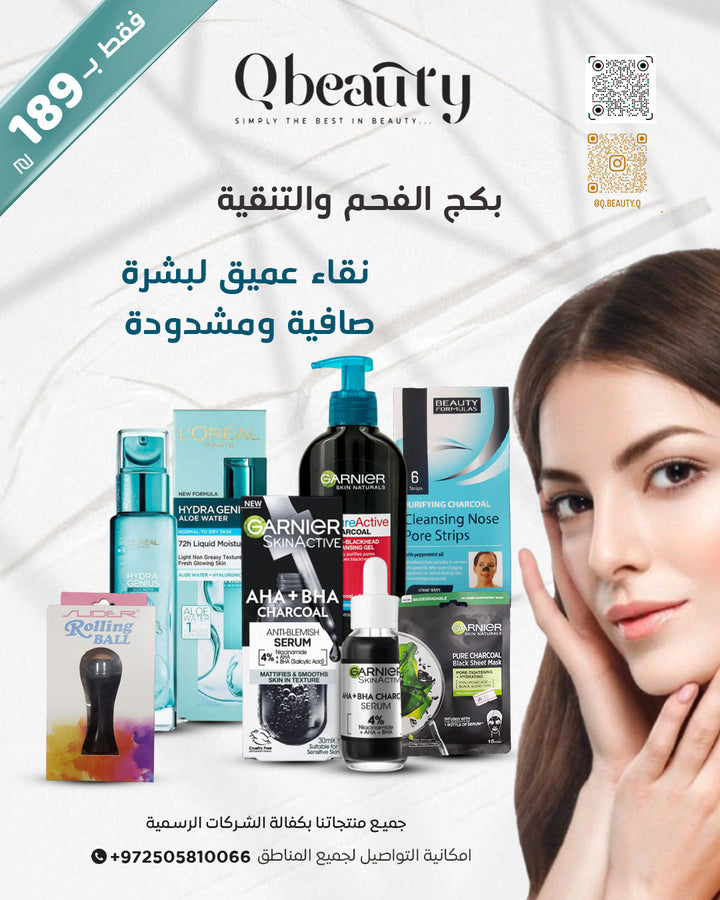 העניקי לעור שלך ניקוי עמוק וחוויית טיפוח שלמה עם ערכת הפחם והניקוי מבית Q Beauty.