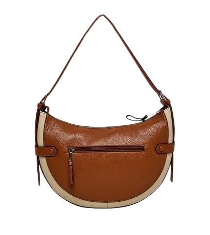 עיצוב ותכונות התיק: תיק חצי ירח כולל תא מרכזי המחולק לשלושה כיסים, כאשר התא האמצעי נסגר ברוכסן. יש רוכסן חיצוני בגב התיק לאחסון, המאפשר גישה נוחה לפריטים חיוניים.