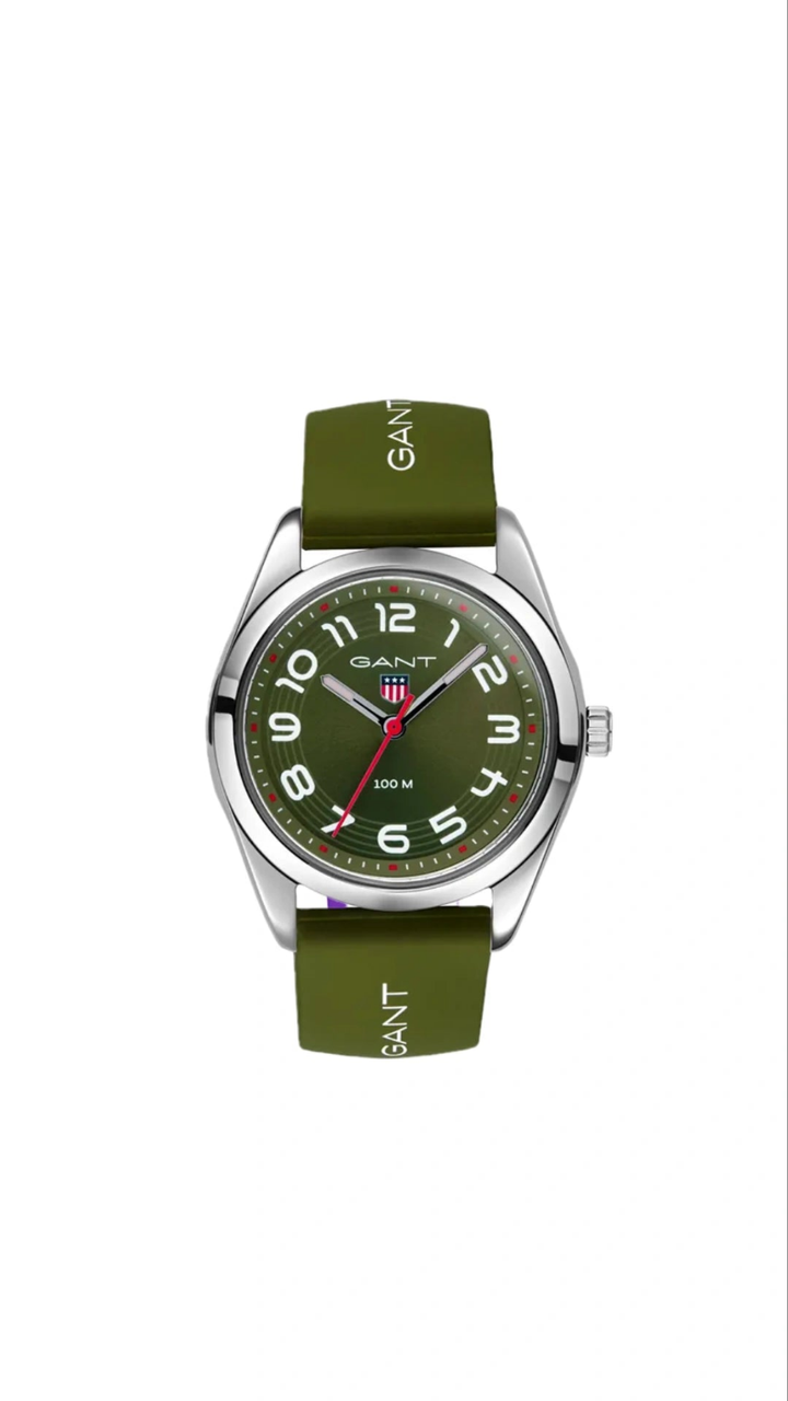 שעון יד מקורי מבית GANT, דגם K320006 (SKU 46506), בעיצוב עגול מיוחד לילדים. קוטר המארז 32 מ״מ, עובי 8 מ״מ, ועשוי פלדת אל–חלד בצבע כסף/אפור, עם זכוכית מינרלית חזקה ועמידות במים עד 100 מטר / 10ATM. לוח השעון בצבע ירוק תואם לרצועת סיליקון/גומי ירוקה ברוחב 16 מ״מ ובאורך מתכוונן 130–180 מ״מ, עם סוגר אבזם נוח. השעון פועל במנגנון קוורץ אמין, עם מחוגים זוהרים לקריאה גם בחושך. שילוב אידיאלי של איכות, נוחות וסגנון צעיר שמתאים במיוחד לילדים!