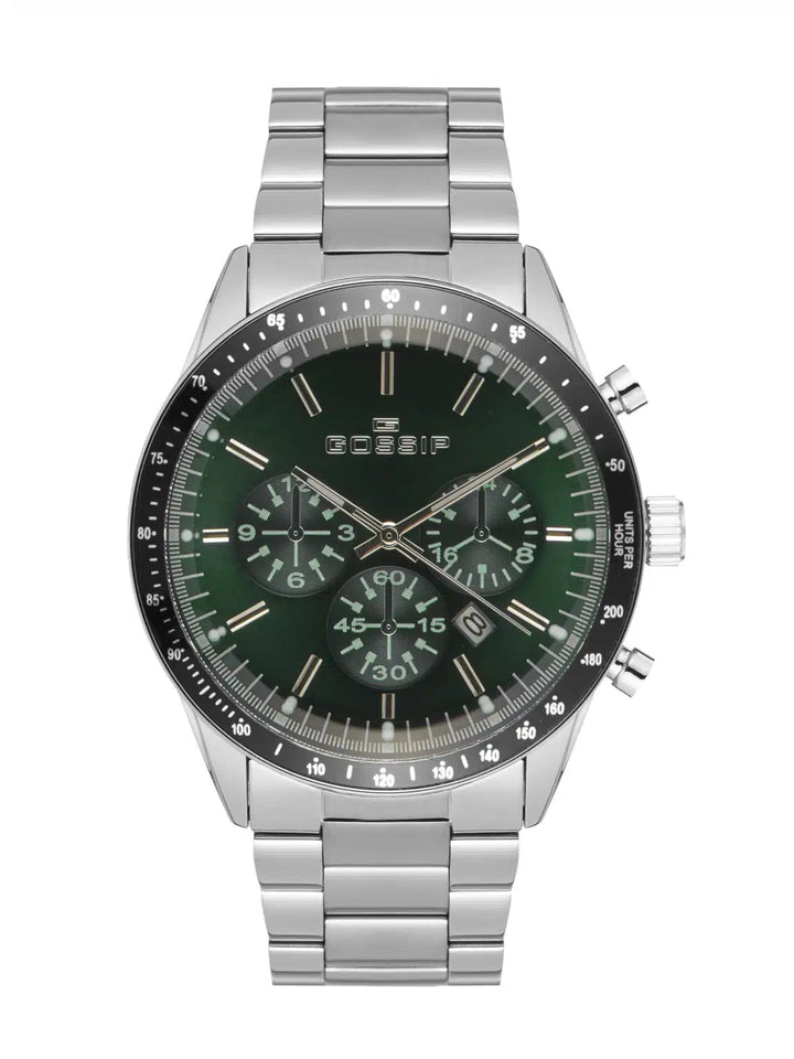 שעון עגול לגבר של המותג GOSSIP בגוון כסוף בגודל 43 מ”מ.