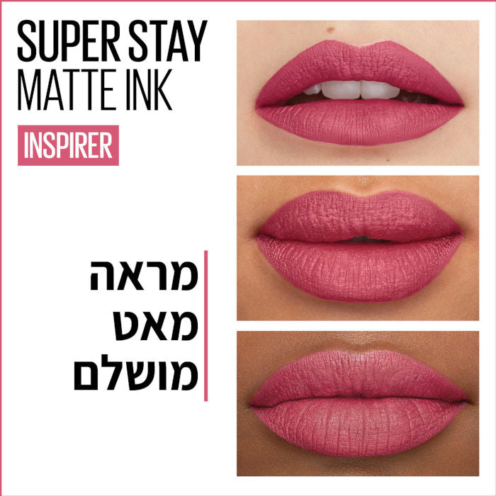 SUPER STAY מבית מייבלין נוצר במיוחד לנשים שהשימוש בשפתון הוא חלק משגרת הטיפוח היומית שלהן, וזקוקות לשפתון עמיד הנשאר לאורך זמן. לשפתונים מרקם מאט המספק כיסוי מושלם לסדקים או כתמים שונים על השפתיים. כל שנותר לעשות זה לבחור את הצבע האהוב עלייך ממגוון הגוונים הייחודי, ולהכניס אותו לערכת האיפור שלך.