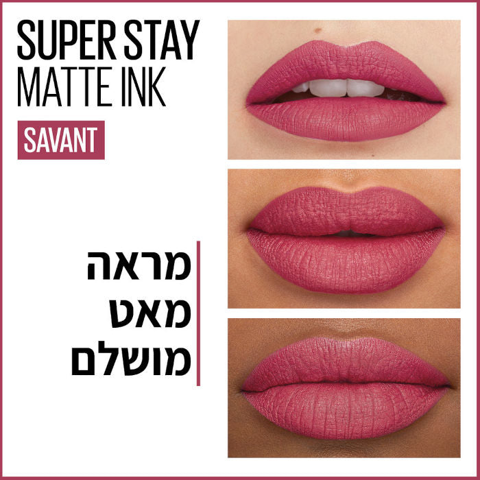 SUPER STAY מבית מייבלין נוצר במיוחד לנשים שהשימוש בשפתון הוא חלק משגרת הטיפוח היומית שלהן, וזקוקות לשפתון עמיד הנשאר לאורך זמן. לשפתונים מרקם מאט המספק כיסוי מושלם לסדקים או כתמים שונים על השפתיים. כל שנותר לעשות זה לבחור את הצבע האהוב עלייך ממגוון הגוונים הייחודי, ולהכניס אותו לערכת האיפור שלך.