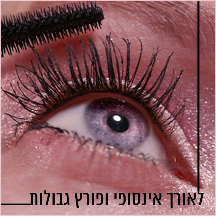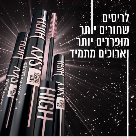 מסקרה SKY HIGH COSMIC של מייבלין ניו-יורק, לאפקט הארכה מקסימלי ונפח מלא של הריסים בגוון אקסטרה שחור.