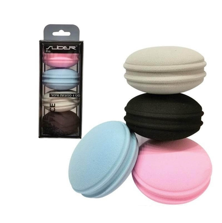 סט 4 ספוגיות איפור בצורת מקרון לניקוי הפנים של חברת סליידר.