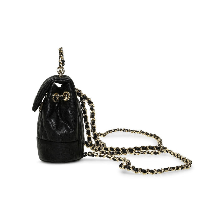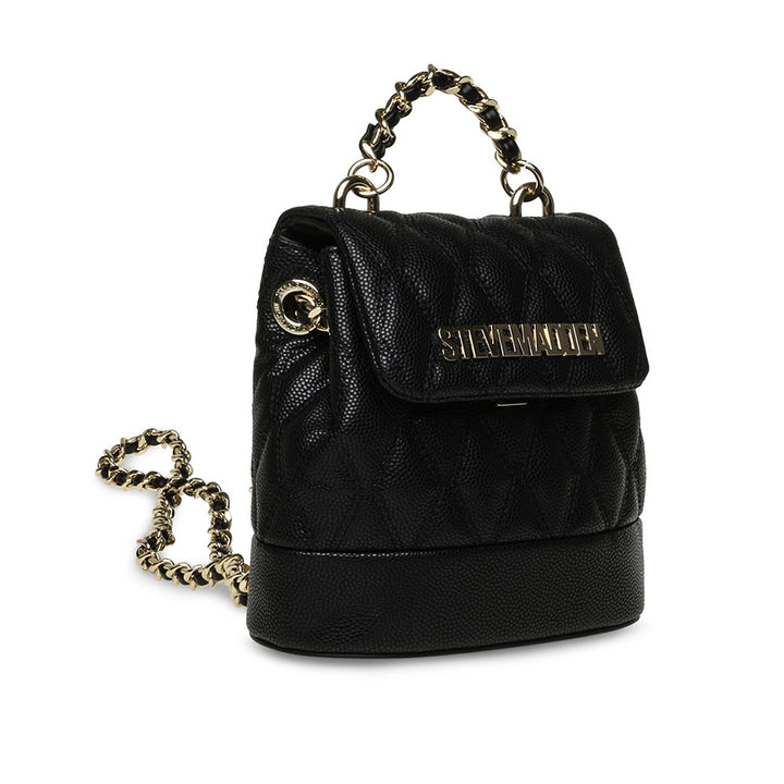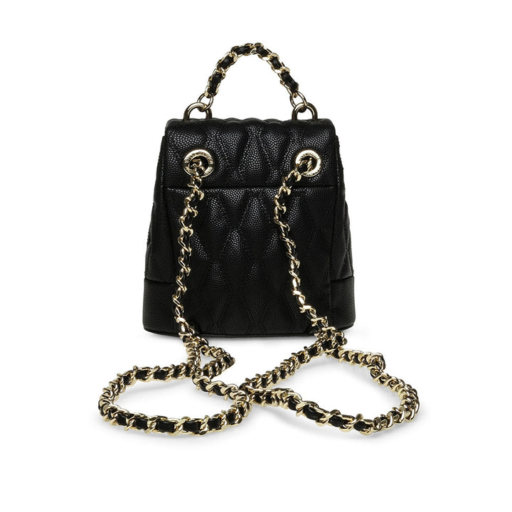 תיק גב לנשים בשחור עם תיפורי קווליט רצועות שרשרת ולוגו מוזהבים מבית סטיב מאדן