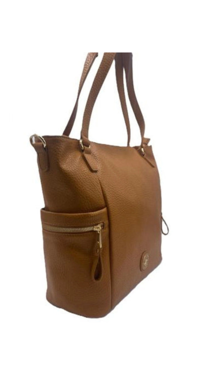 עור אמיתי: תיק נשיאה זה לנשים עשוי מעור אמיתי (עור פרה באיכות גבוהה), עם מרקם חלוקי נחל. חומרת מתכת כסופה מובחרת, בטנת פולי. תחתית עם 4 מסמרות כדי לחזק את התיק שלך מפני שחיקה