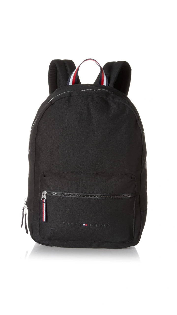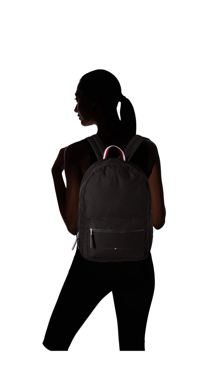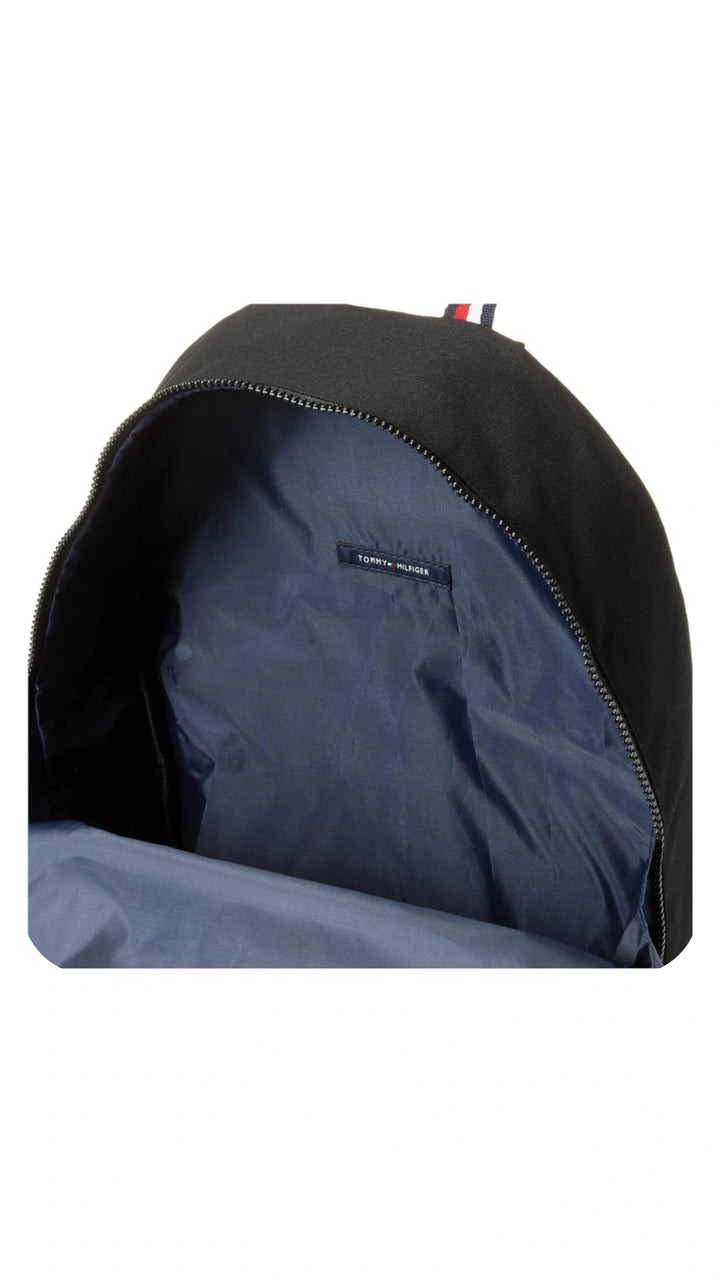 תיק גב Classic Prep מבית Tommy Hilfiger, עשוי פוליאסטר וניילון עמיד במים בצבע שחור עם דיטיילז מעור טבעוני. התיק מכיל תא מרכזי הנסגר באמצעות רוכסן עם חלוקה נוספת של שני תאים, שני כיסים וכיס הנסגר ברוכסן, ובנוסף תא חיצוני בסגירת רוכסן. לתיק רצועות גב מתכוווננות וידית נשיאה.